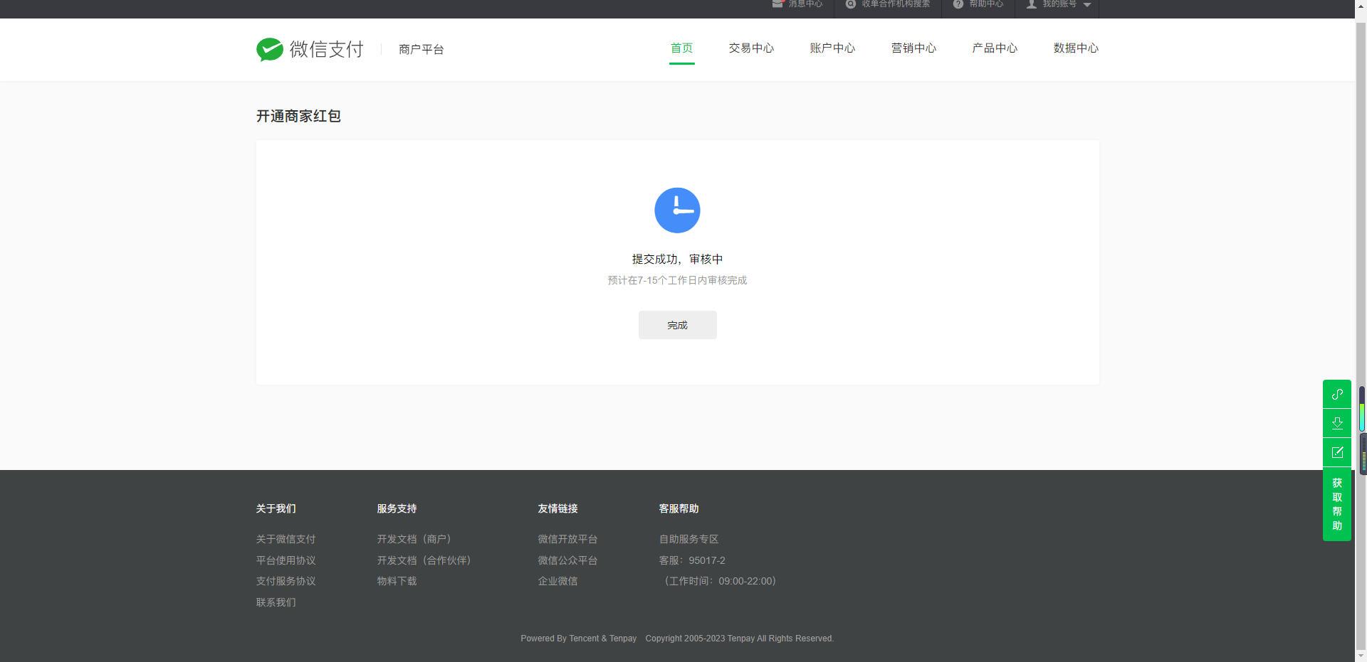 注:满足上述条件的商户可以尝试开通,系统会根据商户号的交易健康度进行综合判断。如无法开通,请保持正常健康交易,后续再尝试开通。